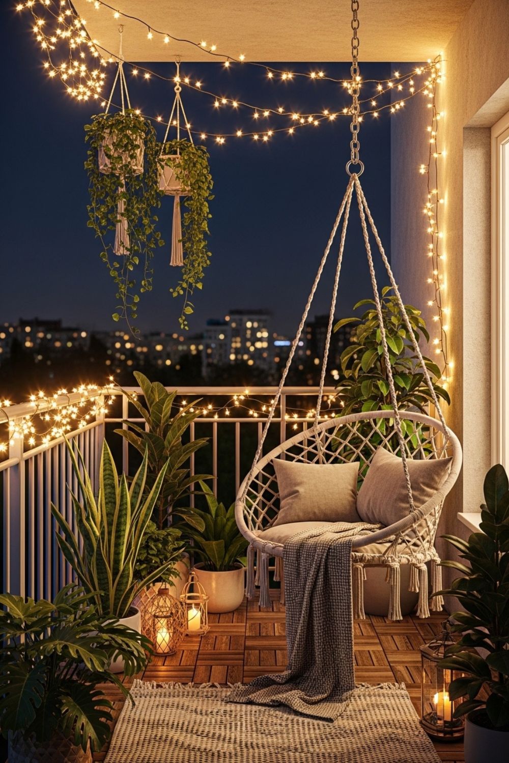Dreamy Boho Balcony Retreat with Hanging Chair