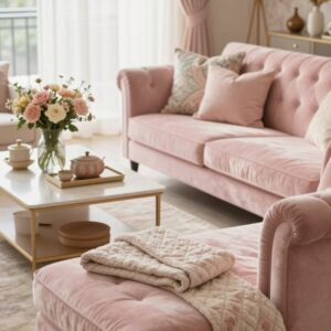 Blush pink is one of the most common choices for feminine living rooms and for good reason. It’s warm and inviting without being too intense, romantic without being too much, and it works well with neutral tones such as cream, white and warm beige. Sage green offers a natural and calming feel to a space,